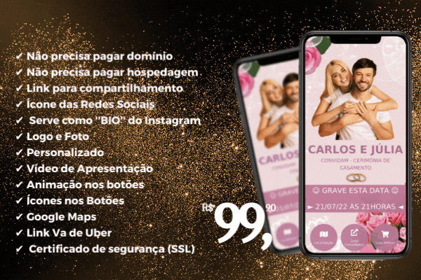 Surpreenda seus amigos com um convite de casamento digital. 👉 A partir de: R$ 100,00